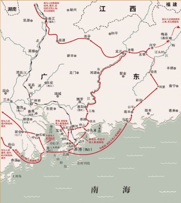 图为粤港地区营救路线。惠州市东江纵队纪念馆供图